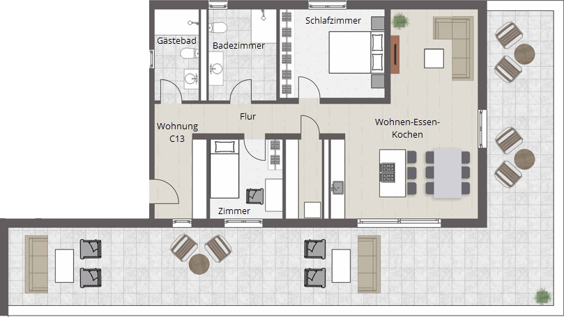 Von der kompakten 2-Zimmer-Wohnung bis hin zur großzügigen Penthouse Wohnung mit bis zu 6 Zimmern – hier findet jeder den perfekten Raum für sich. Mit Wohnflächen zwischen 67 und 196 m2 bieten die Wohnungen flexible Gestaltungsmöglichkeiten. Alle Wohnungen sind barrierefrei, manche sogar rollstuhlgerecht. Jedes Detail wurde darauf abgestimmt, Ihnen das Leben so angenehm und komfortabel wie möglich zu machen. Auf Ihrem Balkon oder Ihrer Terrasse genießen Sie ruhige Stunden und der Blick von den großzügigen Dachterrassen der Penthouses lädt zum Träumen ein.