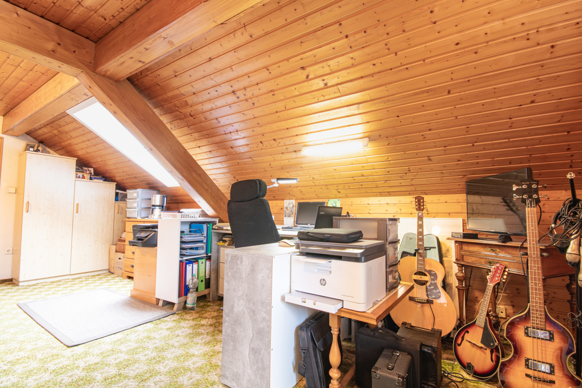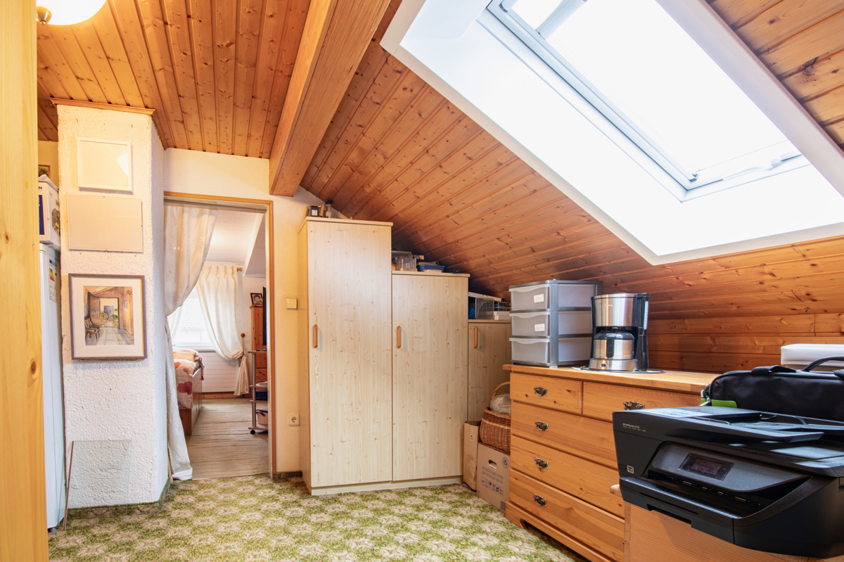 Das Dachgeschoss bietet nicht nur ein weiteres Schlafzimmer als Rückzugsort, sondern auch einen vielseitig nutzbaren Hobbyraum – perfekt für kreative Ideen oder entspannte Stunden.