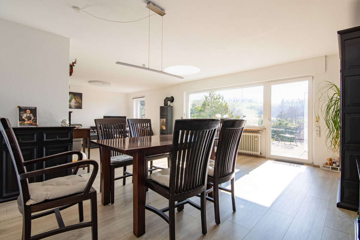 Der offene Wohn-/Essbereich überzeugt mit viel Tageslicht und einer harmonischen Raumaufteilung. Die Küche ist mit modernen Küchengeräten ausgestattet, die bereits ausgetauscht wurden (Spülmaschine Miele, Induktionskochfeld KKT Kolbe, Backofen Bosch, Kühlschrank) und lädt zum gemeinsamen Kochen und Verweilen ein.