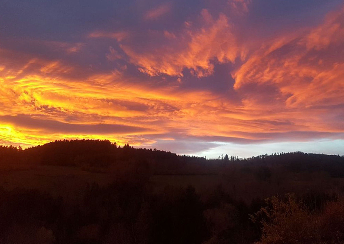 Das Haus befindet sich in einer ruhigen, unverbauten Lage mit wunderschöner Aussicht auf eine hügelige Wald- und Weidenlandschaft.