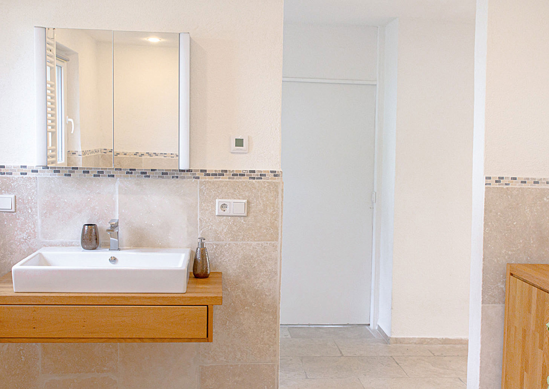 Der teilbeheizte Keller umfasst ca. 80 m² und bietet vielfältige Nutzungsmöglichkeiten: eine kleine Werkstatt, einen Verarbeitungsraum mit Einbauküche und Waschmaschine, einen Holzkeller sowie einen Vorratskeller. Zudem gibt es einen separaten Heizungsraum mit Ölheizung und einem 9.000-Liter-Öltank. Eine praktische Dusche mit Handwaschbecken rundet das Angebot ab.