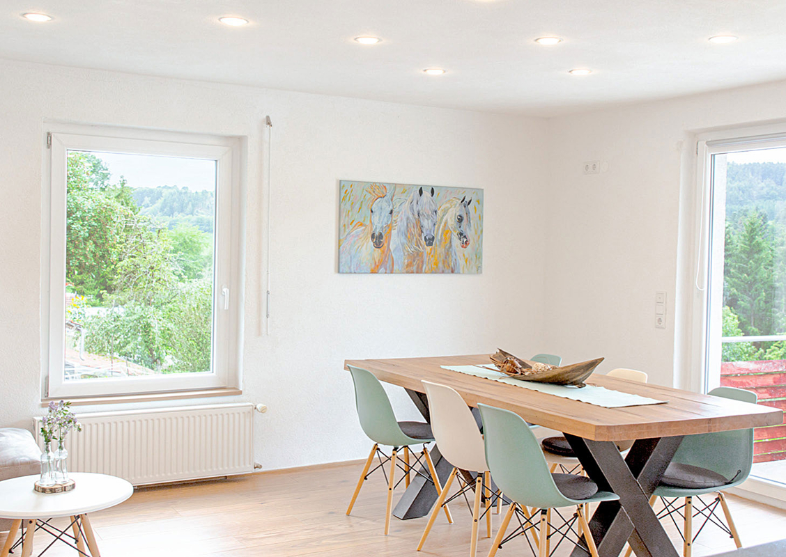 Auch hier erwartet Sie eine lichtdurchflutete 3-Zimmer-Wohnung mit einer gut durchdachten Raumaufteilung. Ein Holzkochherd bringt eine gemütliche, rustikale Atmosphäre.