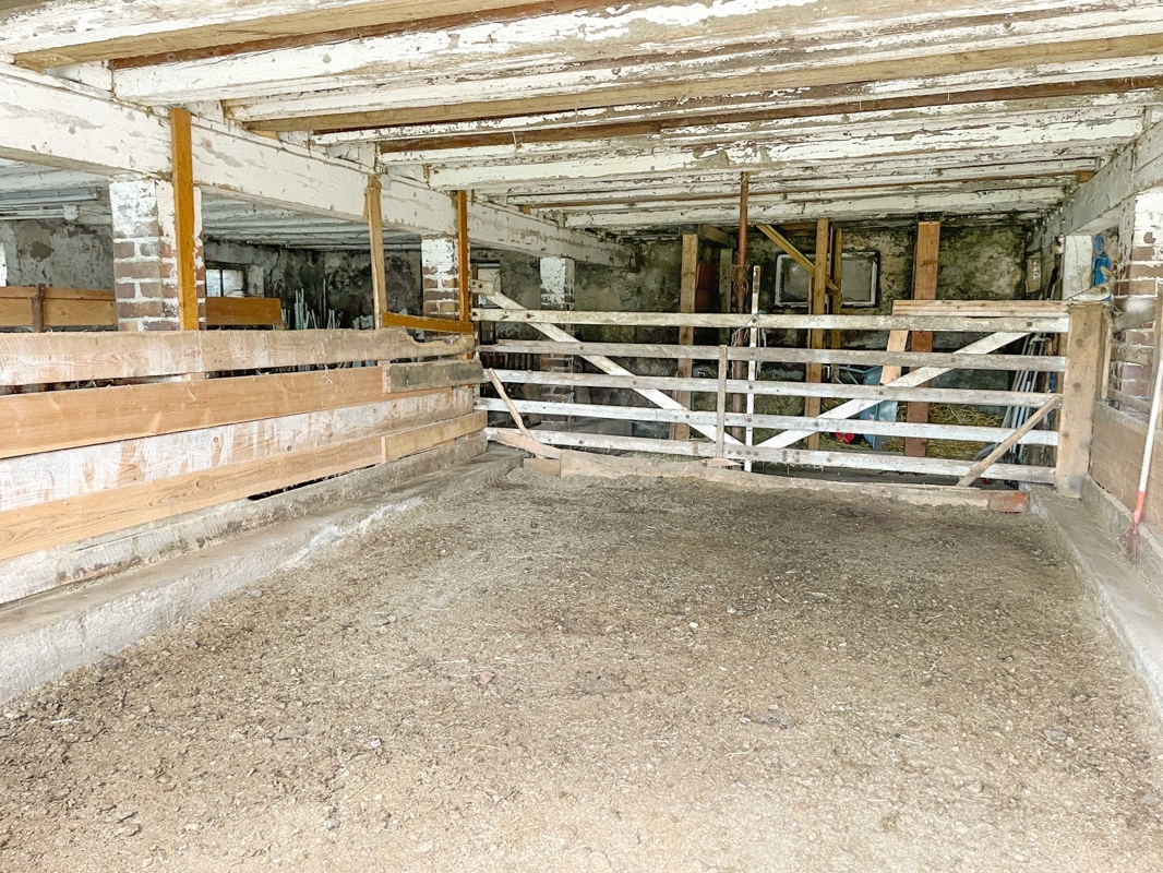 Stallgebäude: Ein Stallgebäude, das sich für weitere Ausbauten oder zur Nutzung als Lager eignet.
