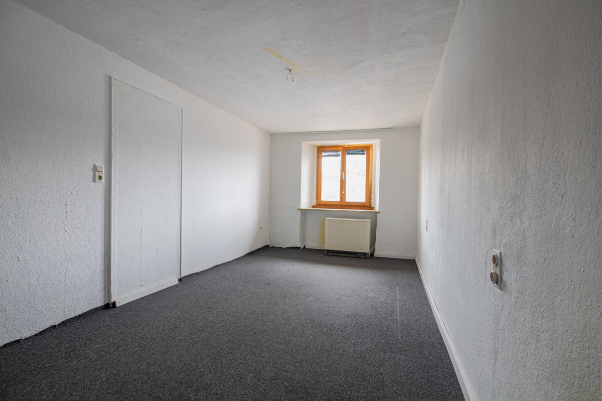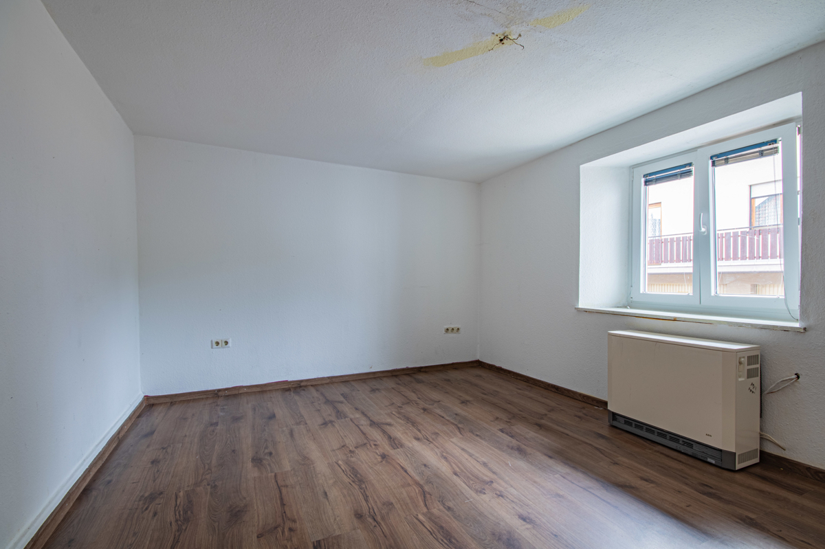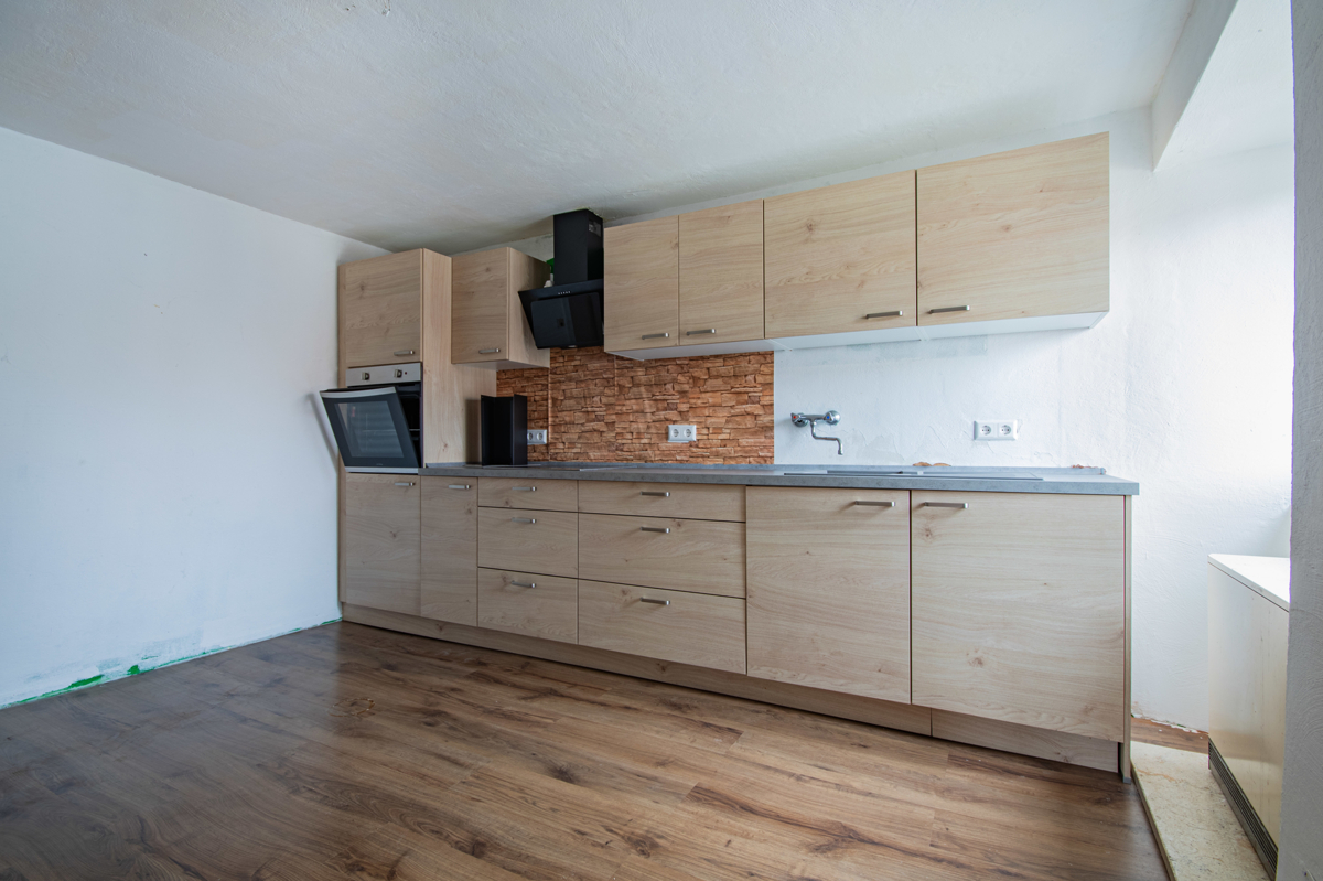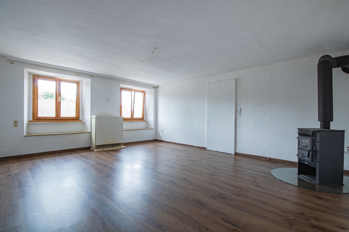 Die Wohnung im 1. Obergeschoss besteht aus einem Flur, einem Bad mit Dusche, Waschbecken, Toilette und Waschmaschinenanschluss, drei Schlafzimmern, einem Wohnzimmer mit Schwedenofen und einer neuen Küche mit Essbereich aus dem Jahr 2023. Die Fenster sind teils aus Kunststoff (2016), ein weiteres wurde 2023 erneuert, die übrigen Holzfenster stammen aus den 1990er Jahren. Die Wohnung ist seit dem 01.07.2025 bezugsfrei.