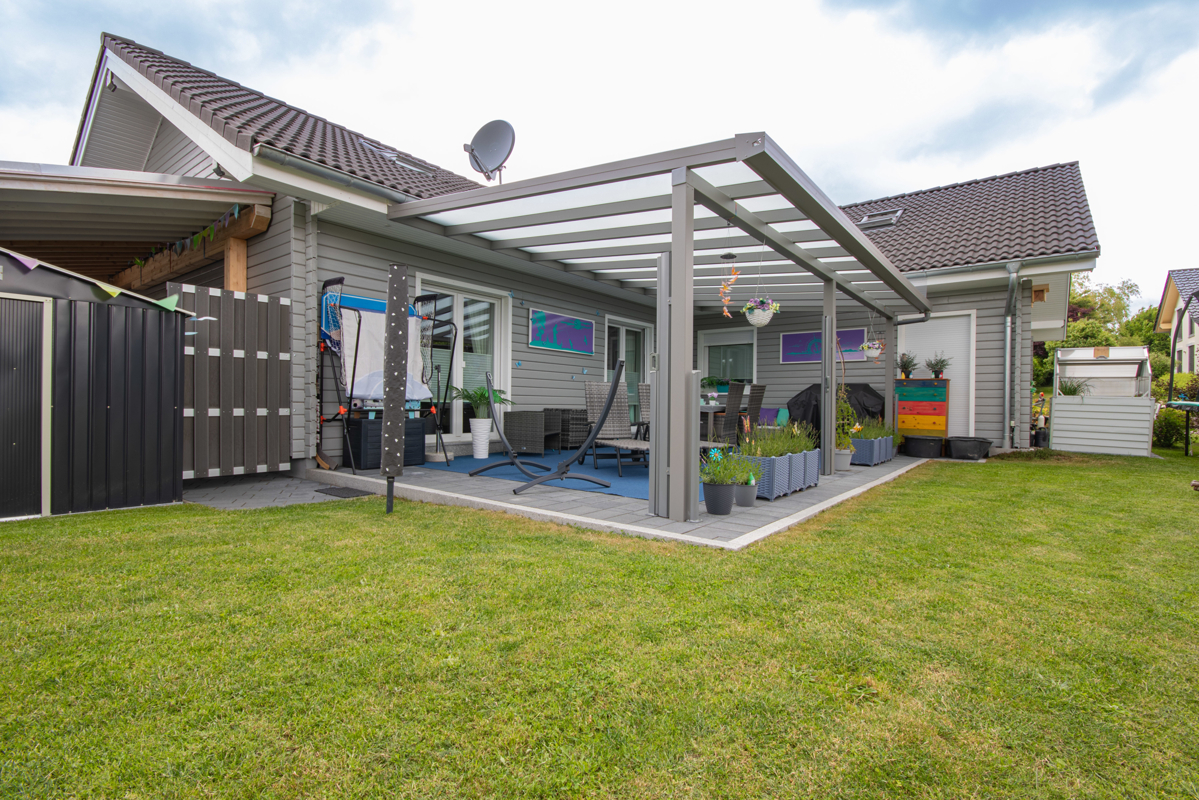 Das großzügige Grundstück bietet neben einem Carport auch einen zusätzlichen Stellplatz. Der Garten und die Terrasse sind sehr geschmackvoll angelegt.
