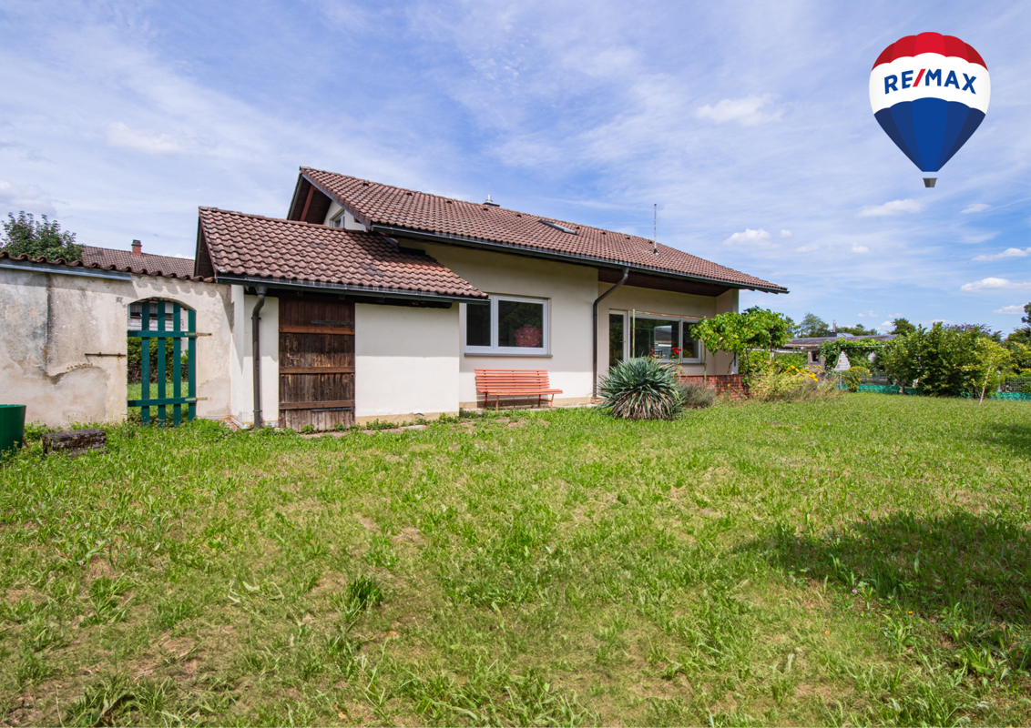 Der großzügige Garten mit viel Wiesenfläche bietet reichlich Platz und liegt angenehm ruhig. Eine Garage gehört ebenfalls zum Haus und sorgt für einen wettergeschützten Stellplatz.