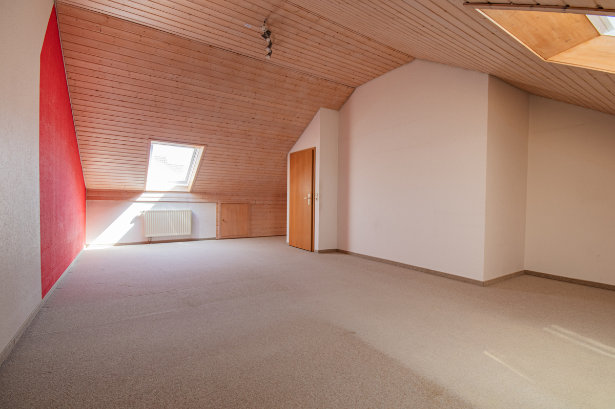 Ein weiteres Highlight ist das ausgebaute Dachgeschoss, das ein großes Zimmer umfasst. Dieses lässt sich ideal als Schlafzimmer oder Hobbyraum nutzen oder sogar in zwei Zimmer aufteilen.
