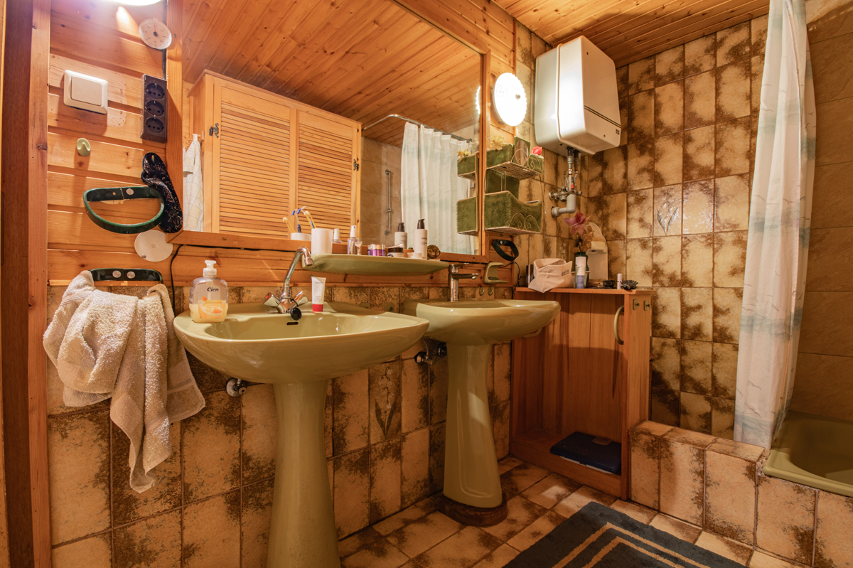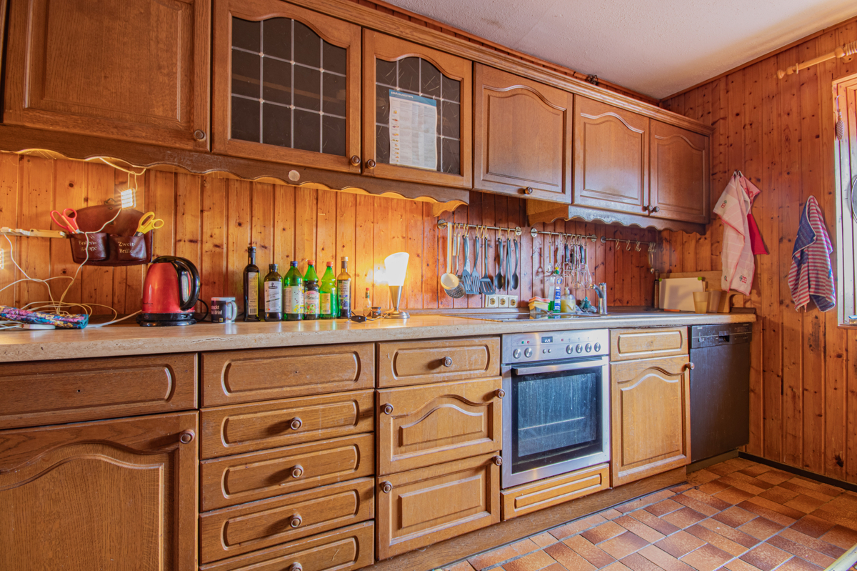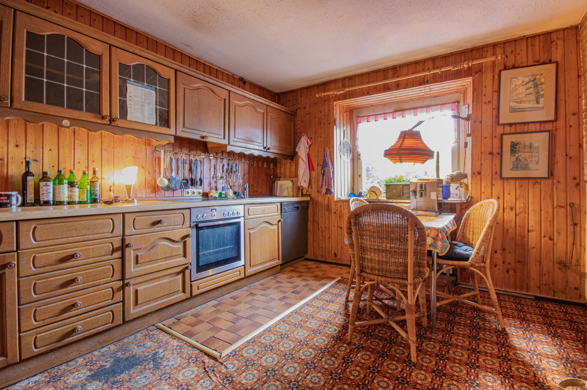 Im Erdgeschoss stehen Ihnen eine Küche mit Einbauküche, ein gemütliches Wohnzimmer sowie ein Gästezimmer zur Verfügung. Ein Badezimmer mit Badewanne, Waschbecken und WC rundet das Raumangebot auf dieser Ebene ab. Vom Badezimmer aus gelangt man über eine Feuerschutztür direkt in die Scheune.