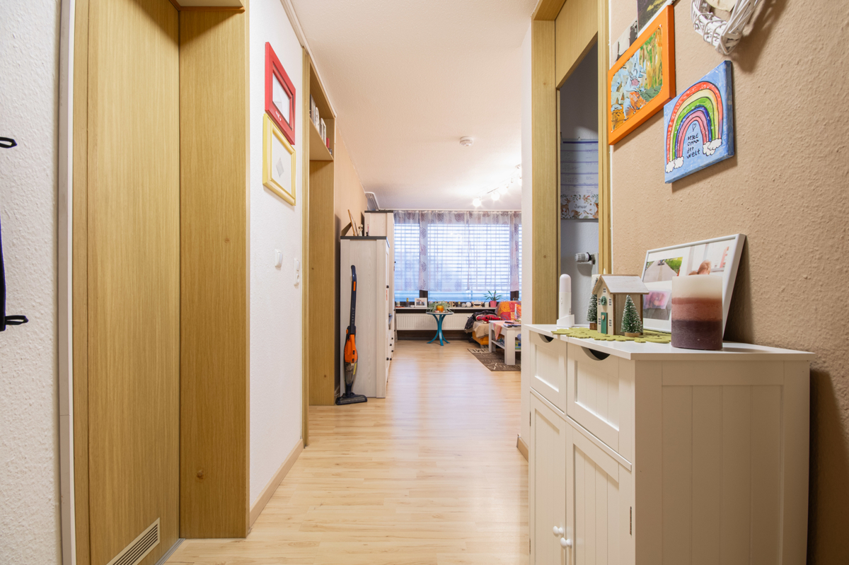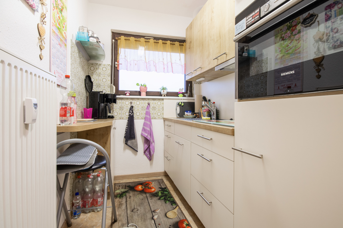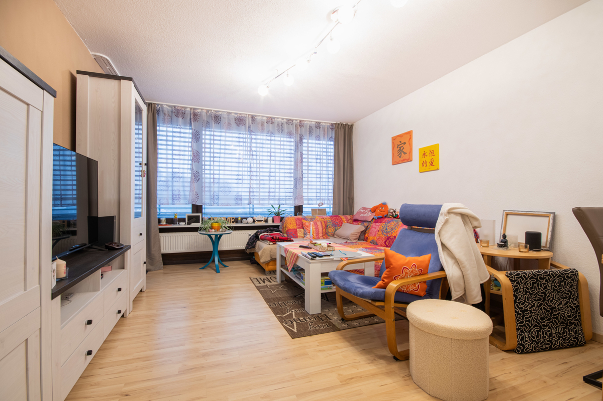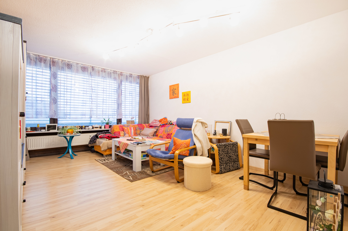 Die Wohnung besticht durch ein großzügiges Wohn-/Esszimmer. Angrenzend befindet sich das helle Schlafzimmer. Ein Badezimmer sowie eine separate Küche machen die Wohnung zu einem praktischen Zuhause. Die Einbauküche ist nicht Bestandteil der Wohnung, da diese der Mieterin gehört.