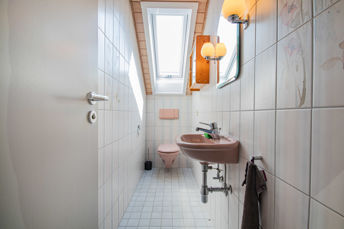 Zur Wohnung gehören ein großer Hobbyraum im Kellergeschoss, der derzeit an die Eigentümer der Erdgeschosswohnung vermietet ist, und eine separate Toilette mit Waschbecken im Untergeschoss. Außerdem befindet sich hier ein eigenes Kellerabteil. Die Wohnung im 1.Obergeschoss steht ebenfalls zum Verkauf.